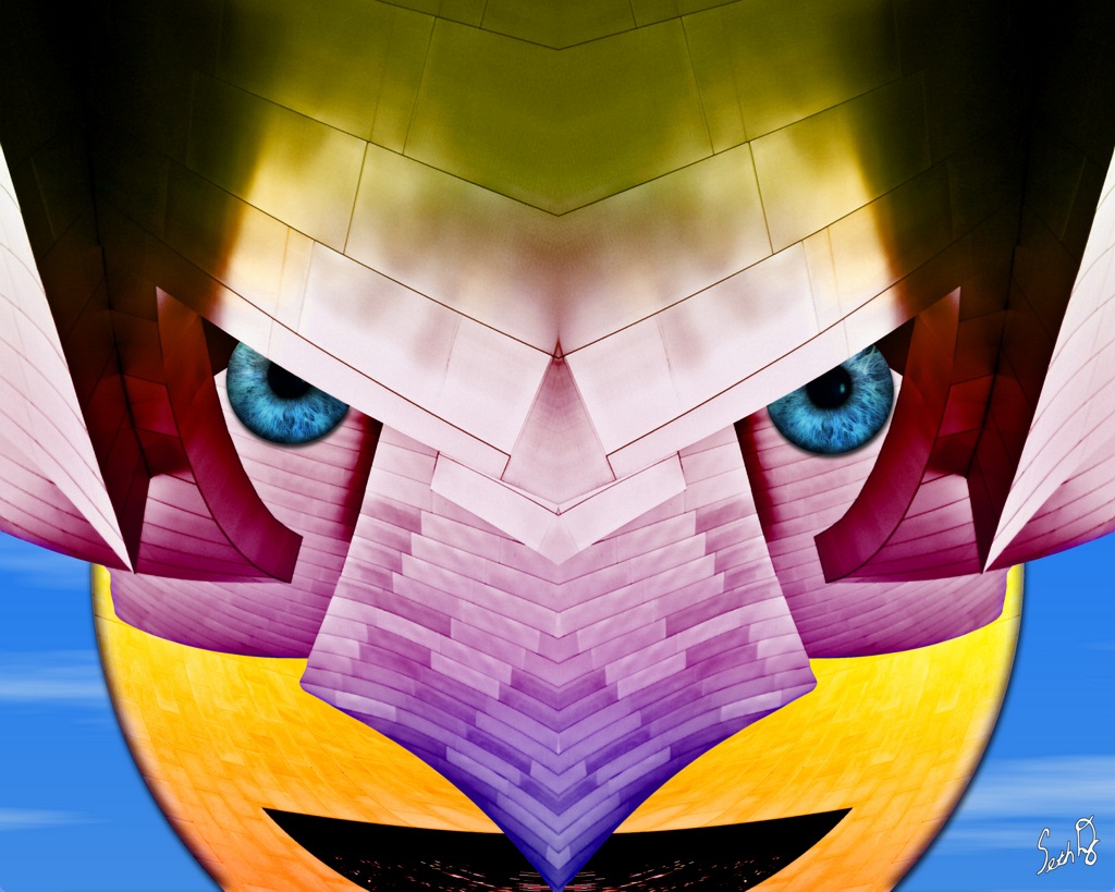 Using digital photos of architectural elements as a base, I used a particular cut, fold and repeat technique to unfold the spirit of the architectural pieces into a humanoid type face. I allowed each group of digital photos to define a unique personality just as unique as each of us Humans are. I now know the essence of being flows through all things, it is only a matter of perception. I truly loved creating each and every one these guys and can only hope you can experience some of the same joy, love and understanding this project has brought into my life.