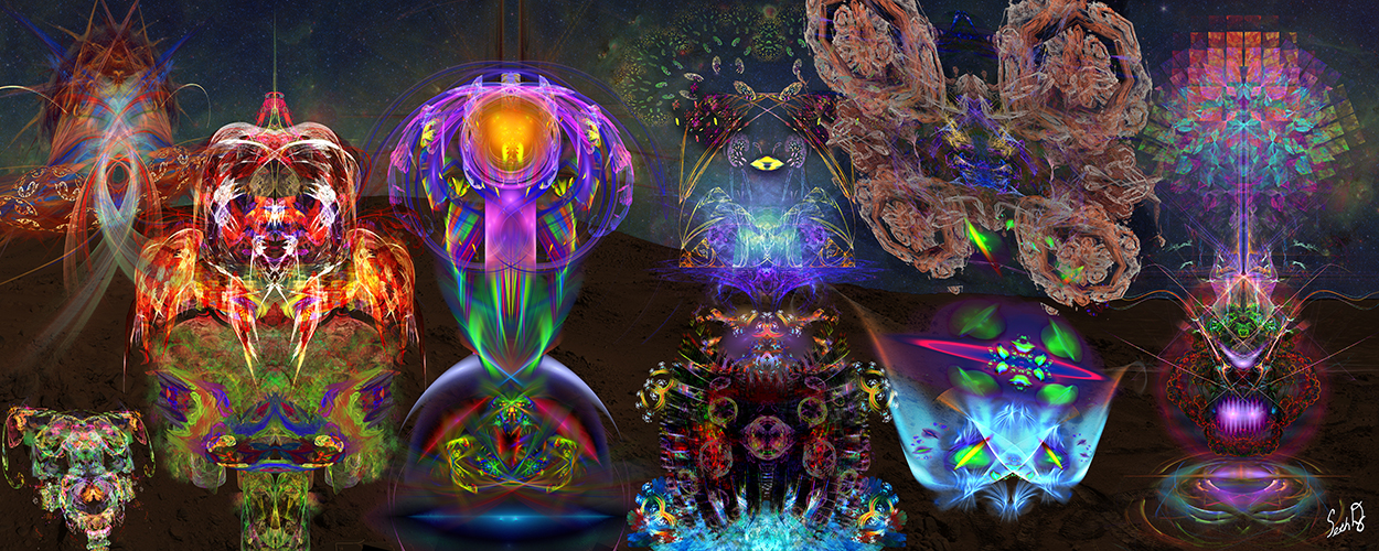 The Seth Dennon Fractal Beings & Faces Gallery is a series in which I was experimenting with fractal generation software to create beings from other dimensions using mathematical scripts.